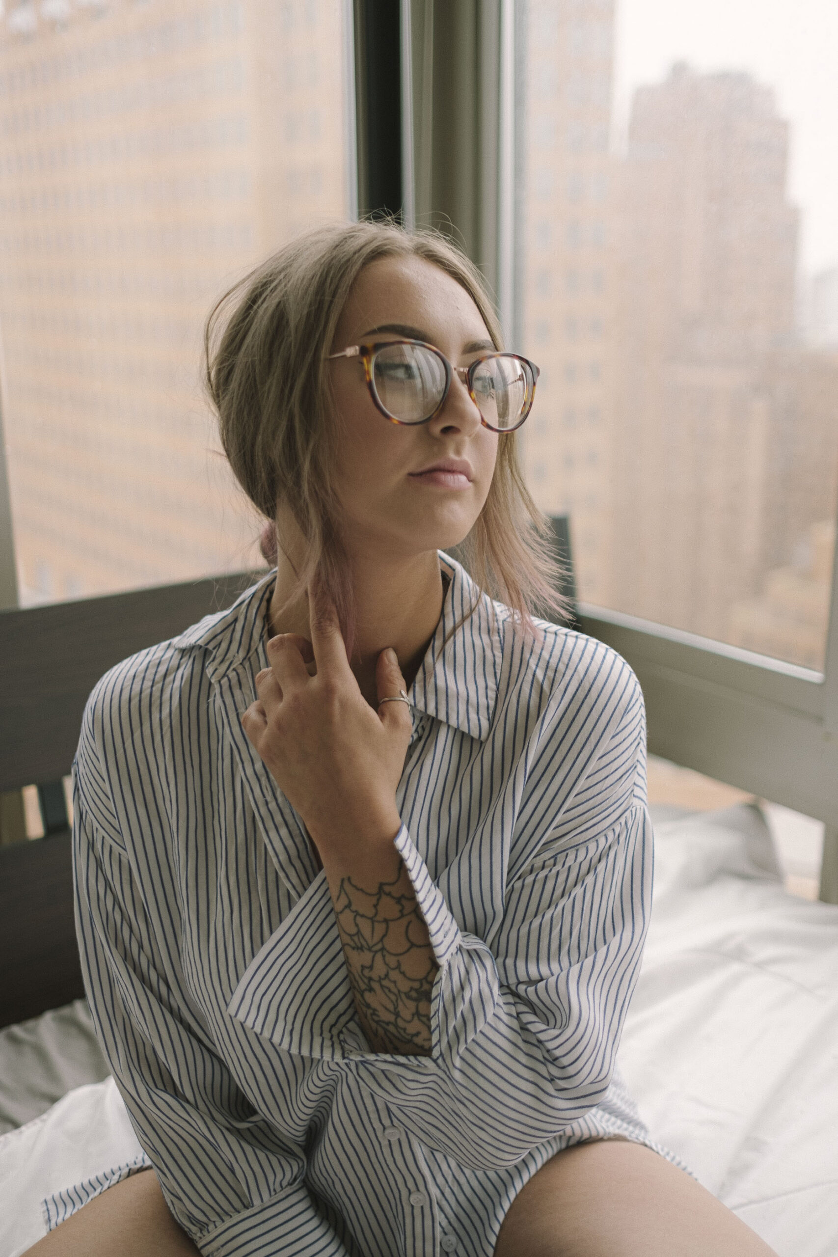 Connected with Nicole and Jess, two good friends, who wanted to collaborate on an intimate boudoir-ish shoot in a rented loft. With limited time and space we made do with what could.